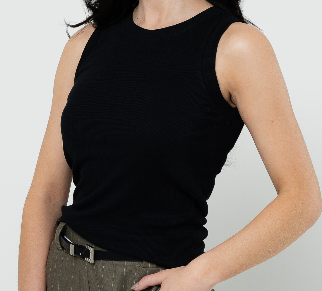 A Regata Canelada é a definição do básico elevado e indispensável. Confeccionada em malha canelada, ela possui uma textura sutil que garante um toque macio, excelente ajuste e conforto ao corpo. É a peça-chave para ser usada sozinha nos dias quentes ou como base perfeita para sobreposições.