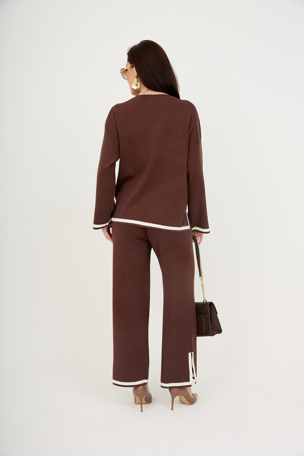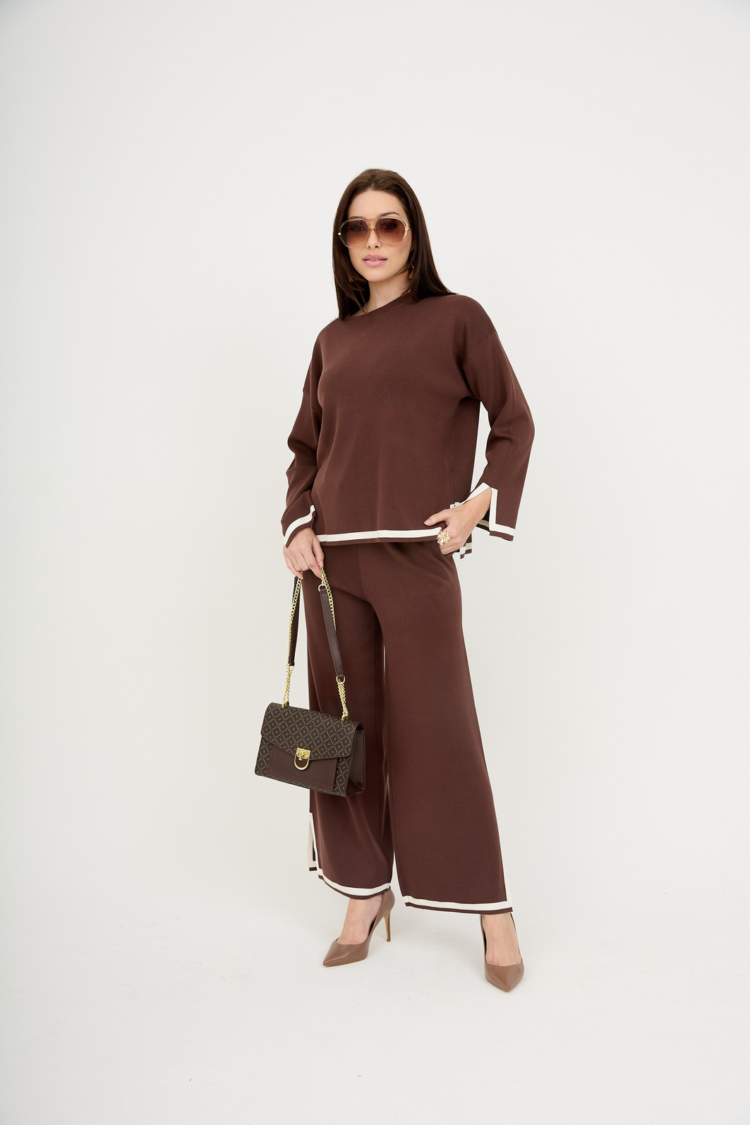 A proposta traz peças amplas que garantem liberdade de movimento sem marcar o corpo. O tricot oferece conforto térmico e um visual moderno, enquanto os detalhes contrastantes elevam a produção.